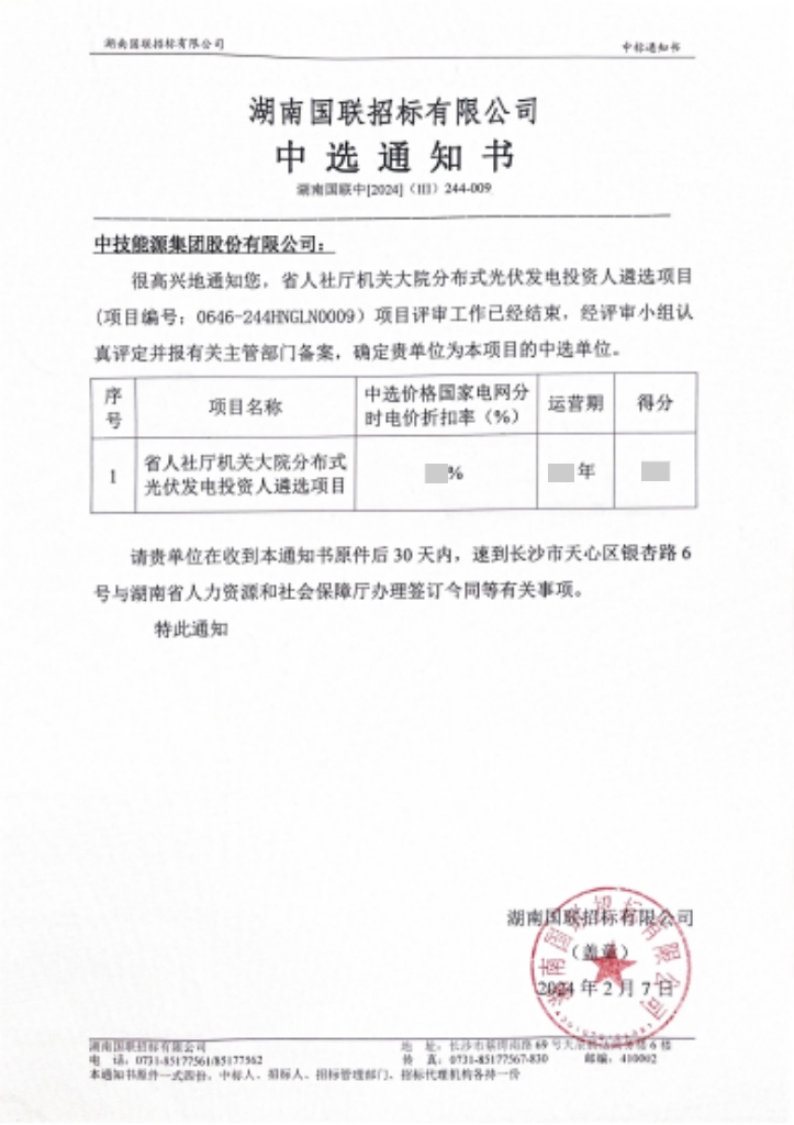 近日,中技能源集团股份有����� �������Ƴ����������� �������Ƴ������������ �������Ƴ������������ �������Ƴ�������限公司(以下简称“中技能源����� �������Ƴ������������ �������Ƴ����������� �������Ƴ������������ �������Ƴ�������”)凭借专业的技术能力和丰富的项目����� �������Ƴ����������� �������Ƴ������������ �������Ƴ����������� �������Ƴ�������经验成功中标“省人社厅机关大院分布式光伏发电����� �������Ƴ����������� �������Ƴ����������� �������Ƴ������������ �������Ƴ�������投资人遴选项目”。