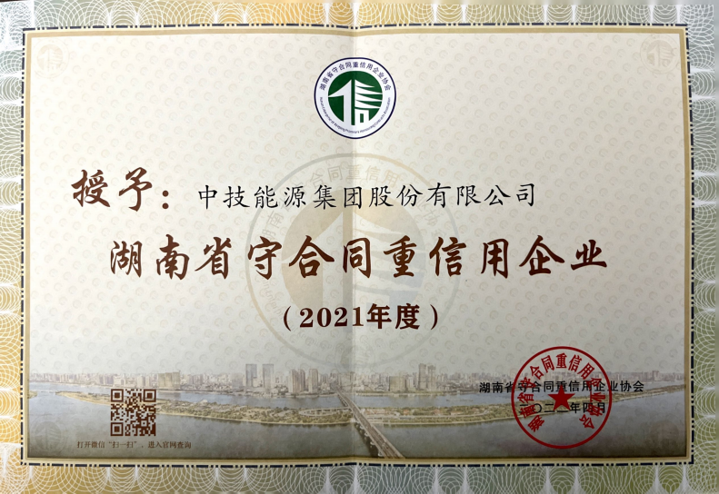 湖南省守合同重信用企业(2021年)